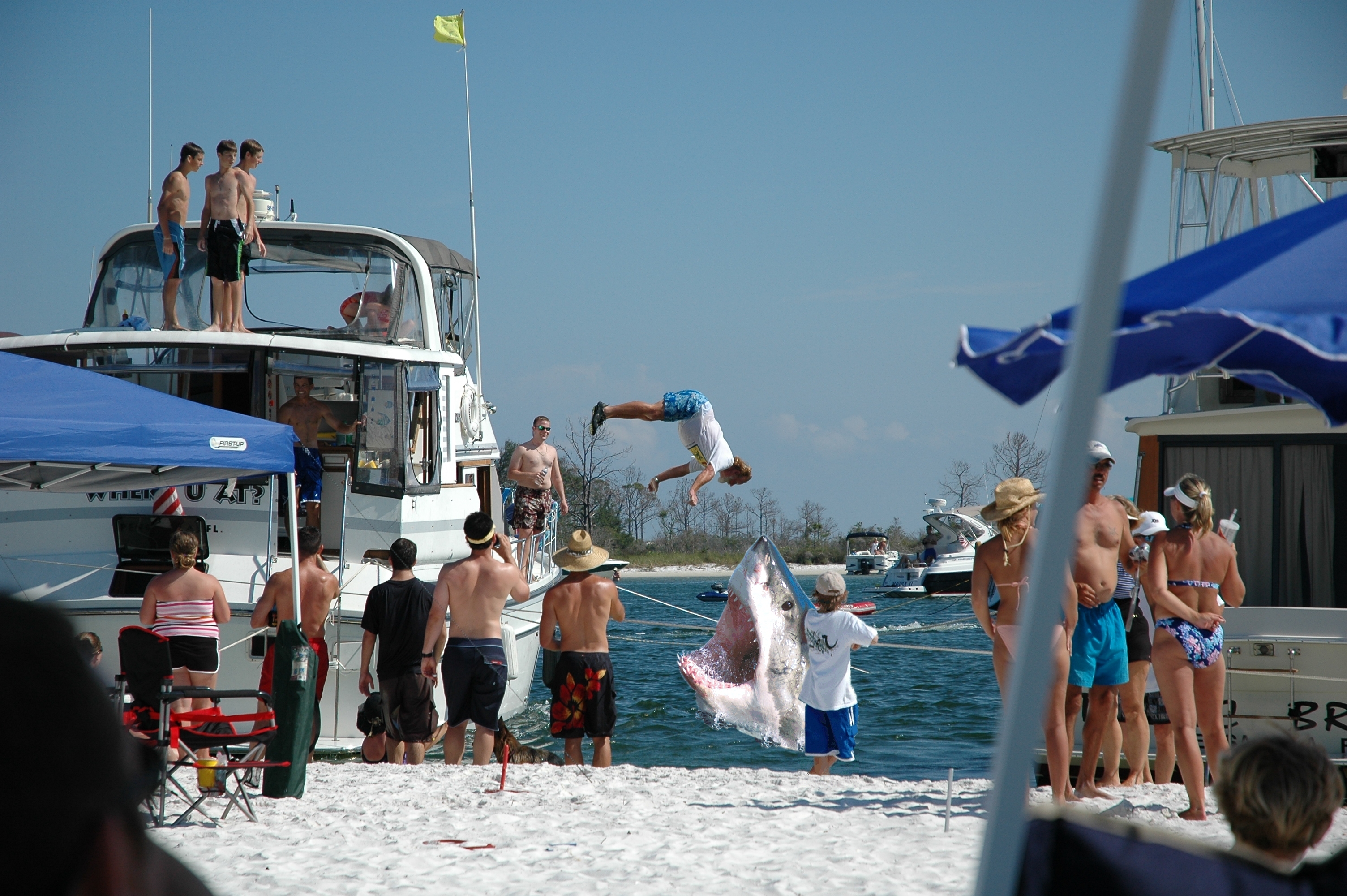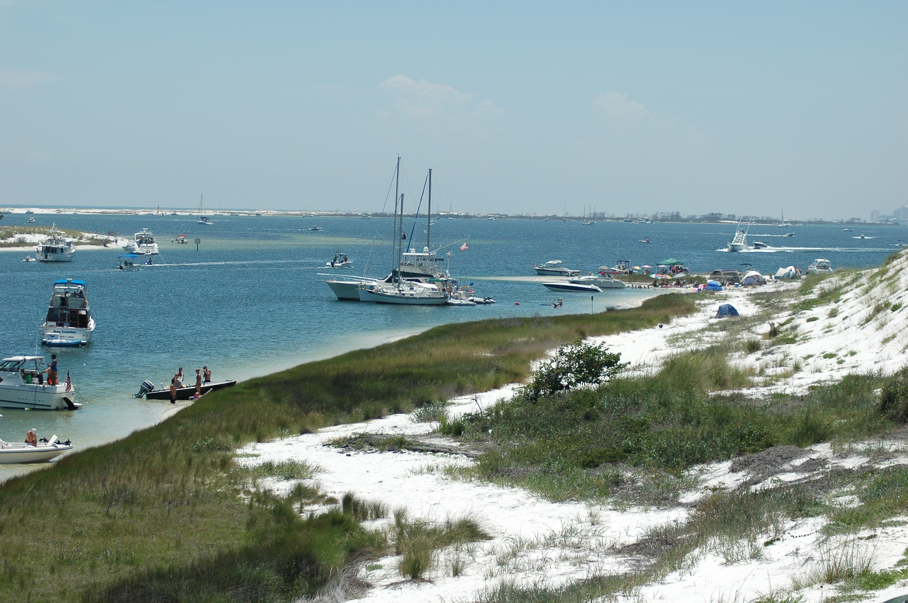 We have been camping at the Fort McRae area for more than 25 years on Memorial Day weekend. It gets more crowded every year, but generally people are courteous and it winds up as one big party. This year, some idiot across the way backed his 28' Scarab off the beach at full throttle and decided he would cut a full throttle circle in the Fort McRae lagoon... a no-wake zone! He didn't make it and tangled up in somebody's anchor line. You shoulda heard the commotion he stirred up. Marine cops took the guy off to the clink. Some people should not be allowed to own boats.