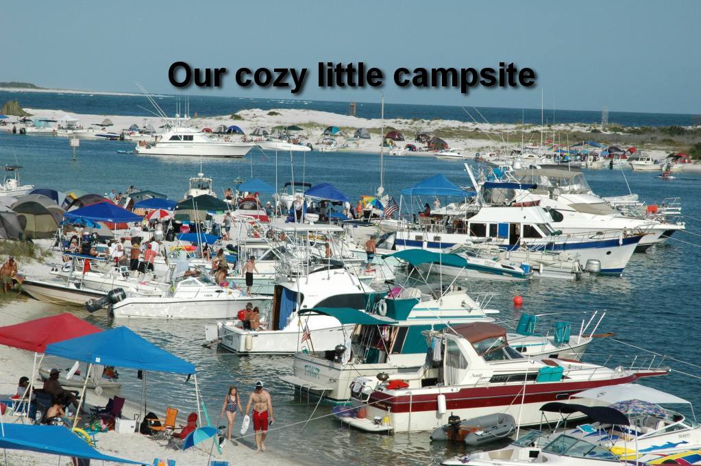 Memorial Day weekend 2007 was a sight to behold. There was a ton of delicious food, good music, plenty of adult beverages and nobody was a stranger. We got there with Liquorish on Thursday night to make sure we would have a place to anchor and Steve and Patsy Geci were already anchored at the Admiral Island site with Seeker. It wasn't long before several other boats were anchored there as well. We discovered that Ron Harper and his lovely wife Loni were setting up camp right next to us. I haven't seen Ron since the early 1980's! We spent a