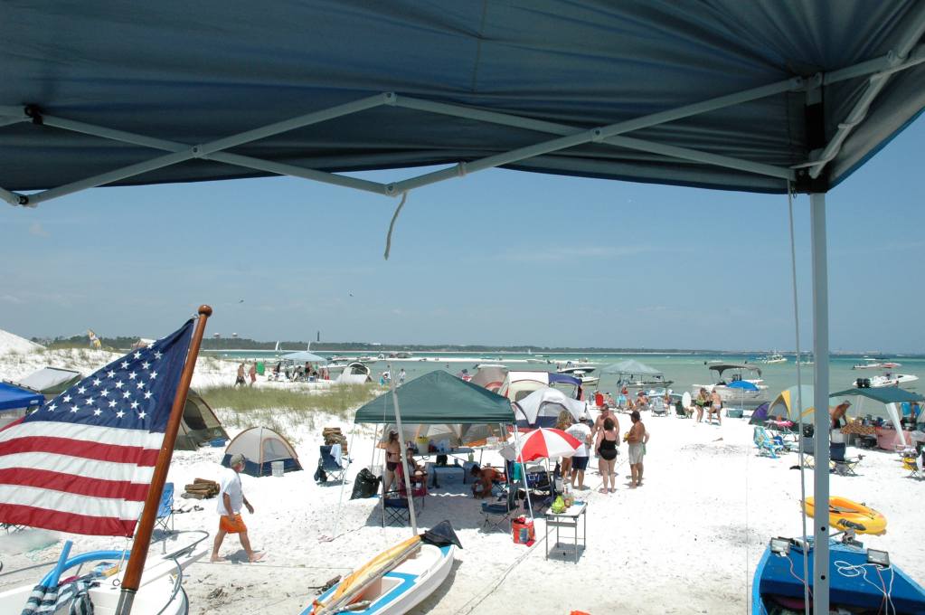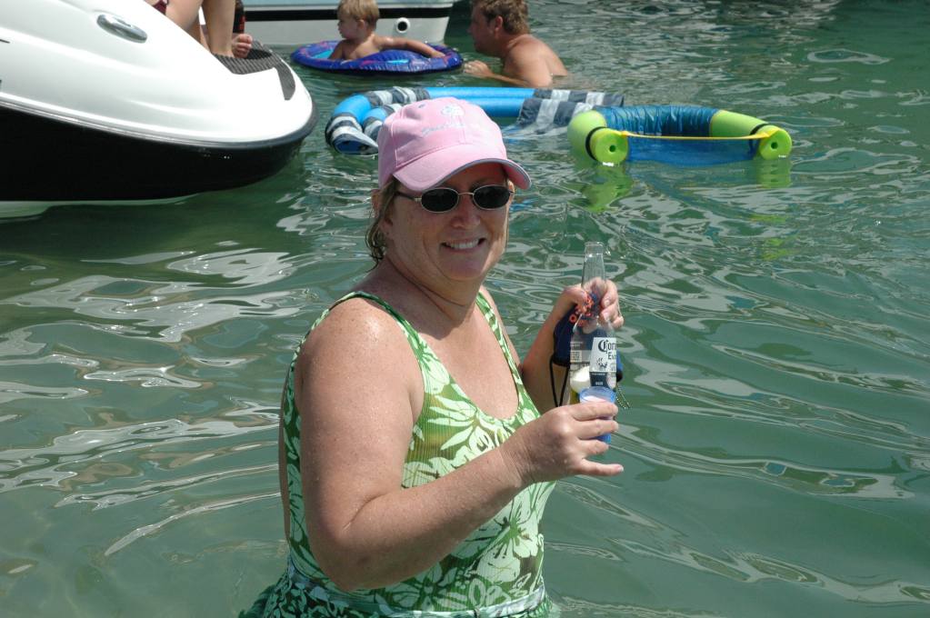 Saturday is the biggest day of the weekend and it there wasn't much more room to pull in another boat to the beach. Everybody knew everybody else, and if they didn't really know 'em, they would soon. The Tailgater was fired up dozens of times and Margaritas were had by all. Patsy Geci challenged the Ericsons to a blend-off on frozen Pina Coladas. Both batches were good, but I was partial to the batch we made. In addition to the usual ingredients, we had fresh pineapple, fresh coconut, and dab of vanilla ice cream. Thick, cold and a little chewy!