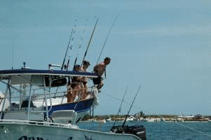 On Friday, Jimbo and Janie Jolly arrived on Trigger and they spent a couple of nights with us on Liquorish. Late that night, the Clarks (the Jolly's daughter Tiffany and her husband Cam) arrived on Reel Lucky. Of course, Cam brought the tailgator, a 2-cycle blender which, when fired up - makes everybody look to see who in hell brought a weed-whacker or a chain saw to the beach! We (the Jollys and the Ericsons) had Eric's shrimp and crab bisque, and Jimbo's fried fish... an assortment of grouper, flounder and snapper... yummy!