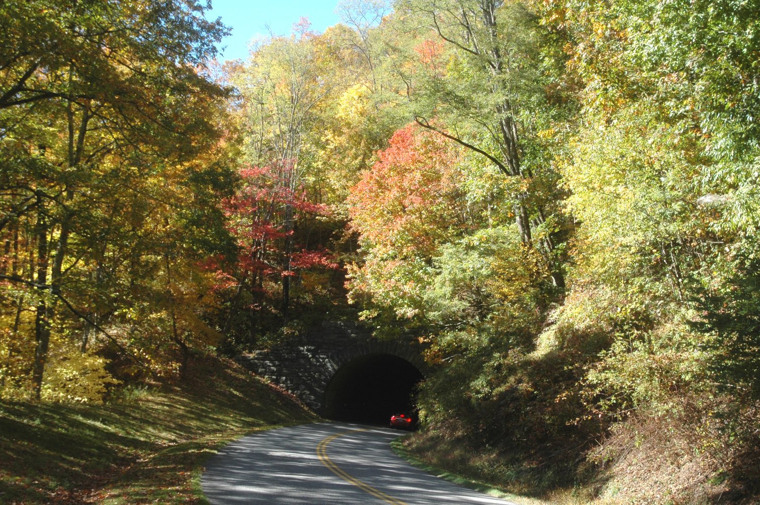 Notice the brake lights of a car entering the tunnel. I lightened this pic up to show the tunnel.